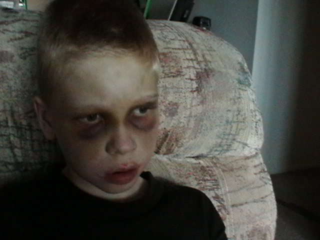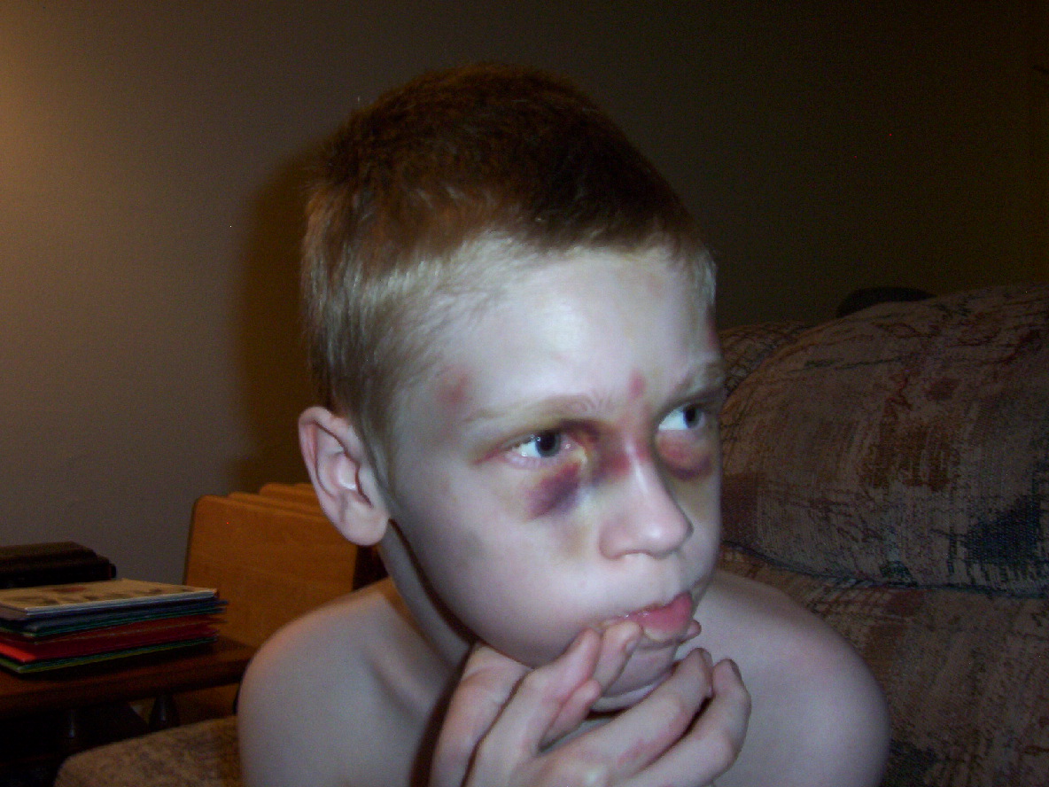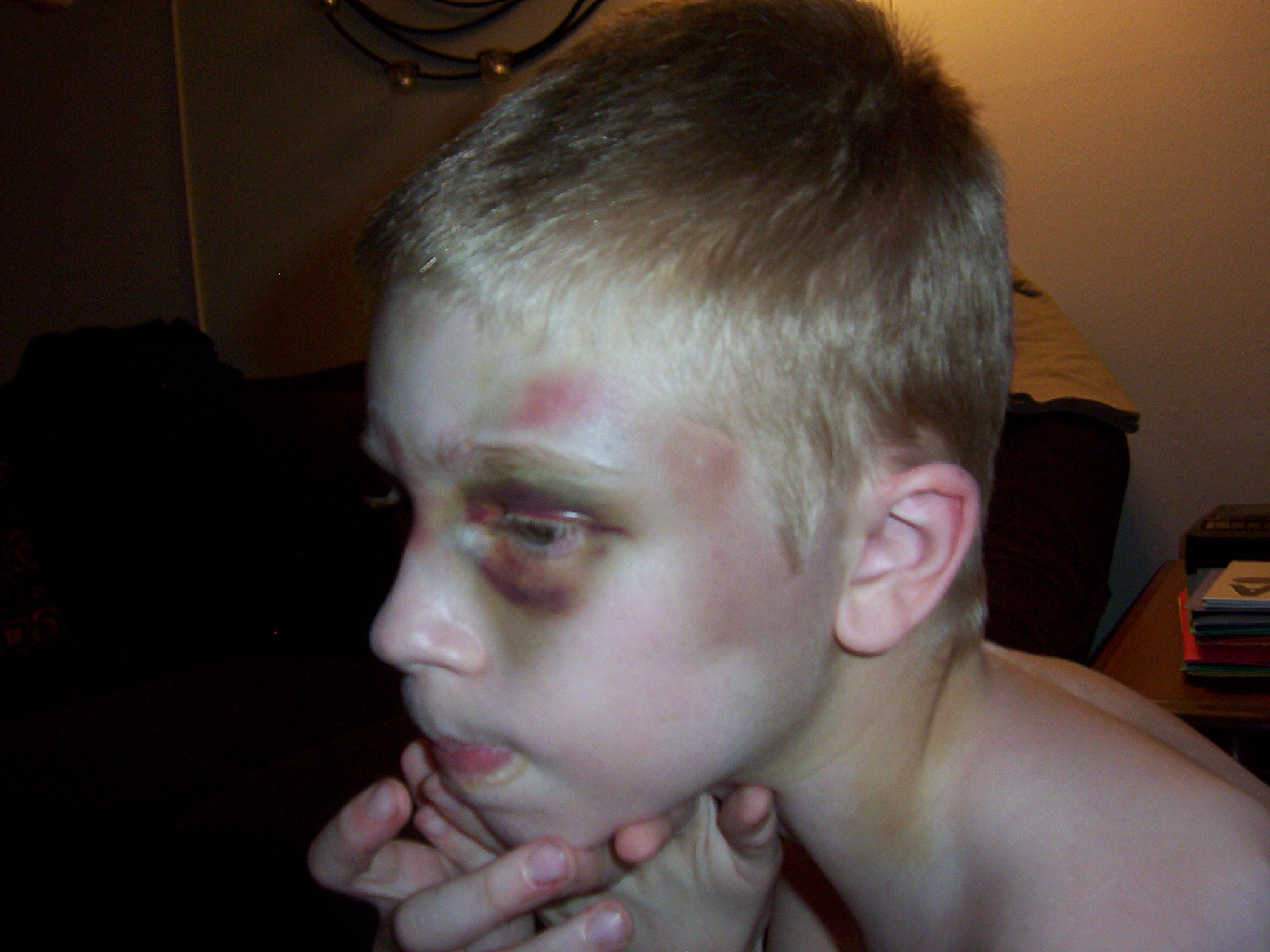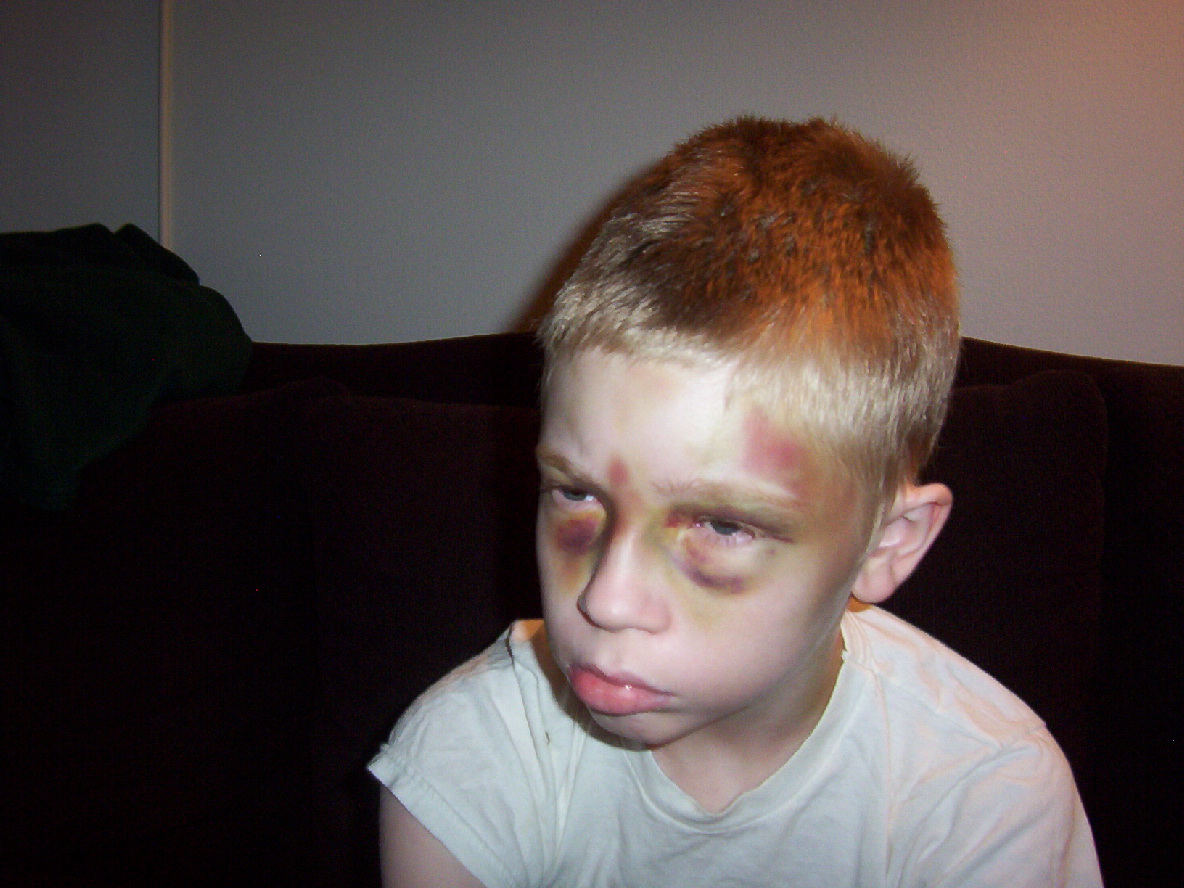 At court, the 'Child-Beater' stated that she rammed My head on the Top-Rail on My bed Once, then I went around smashing My head all the way around it, causing all of the bruising. The 'Child-Beater' got off easy. My Dad ensured that the 'Child-Beater' could not be left alone with anyone unable to defend themself, meaning that she could not work around children or the elderly. She used to work as an Registered Nurse through a company that handled the Elderly. She lost all rights to her children.